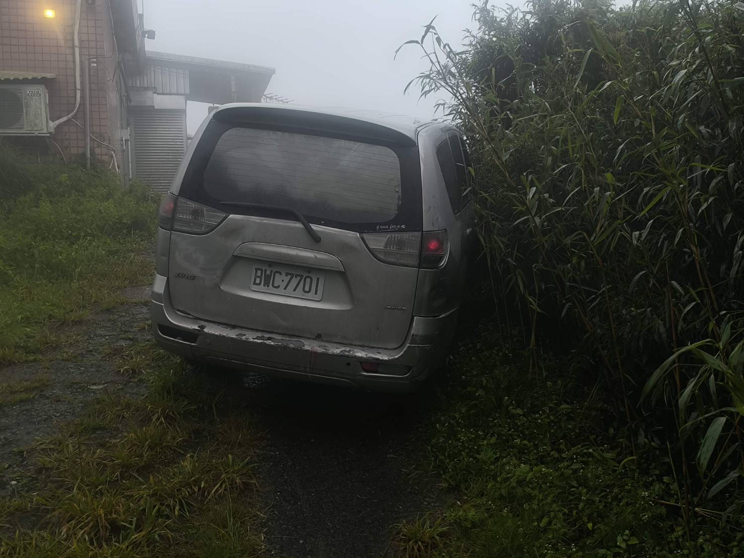 在自救過程中,車主為了避免車輛滑落,反覆嘗試以倒檔脫困,卻因輪胎不斷空轉、陷入更深的泥地中。現場的泥土與濕草交錯,導致車輪失去抓地力,甚至因地形傾斜造成車體一側貼近竹林,行動空間受限。